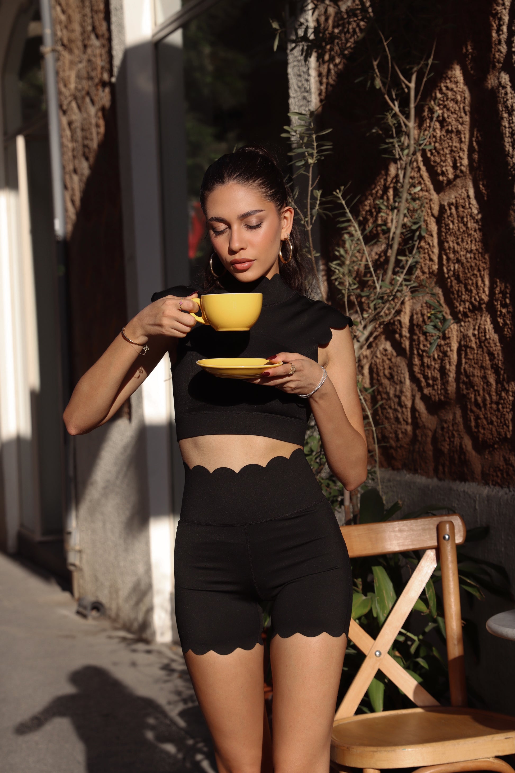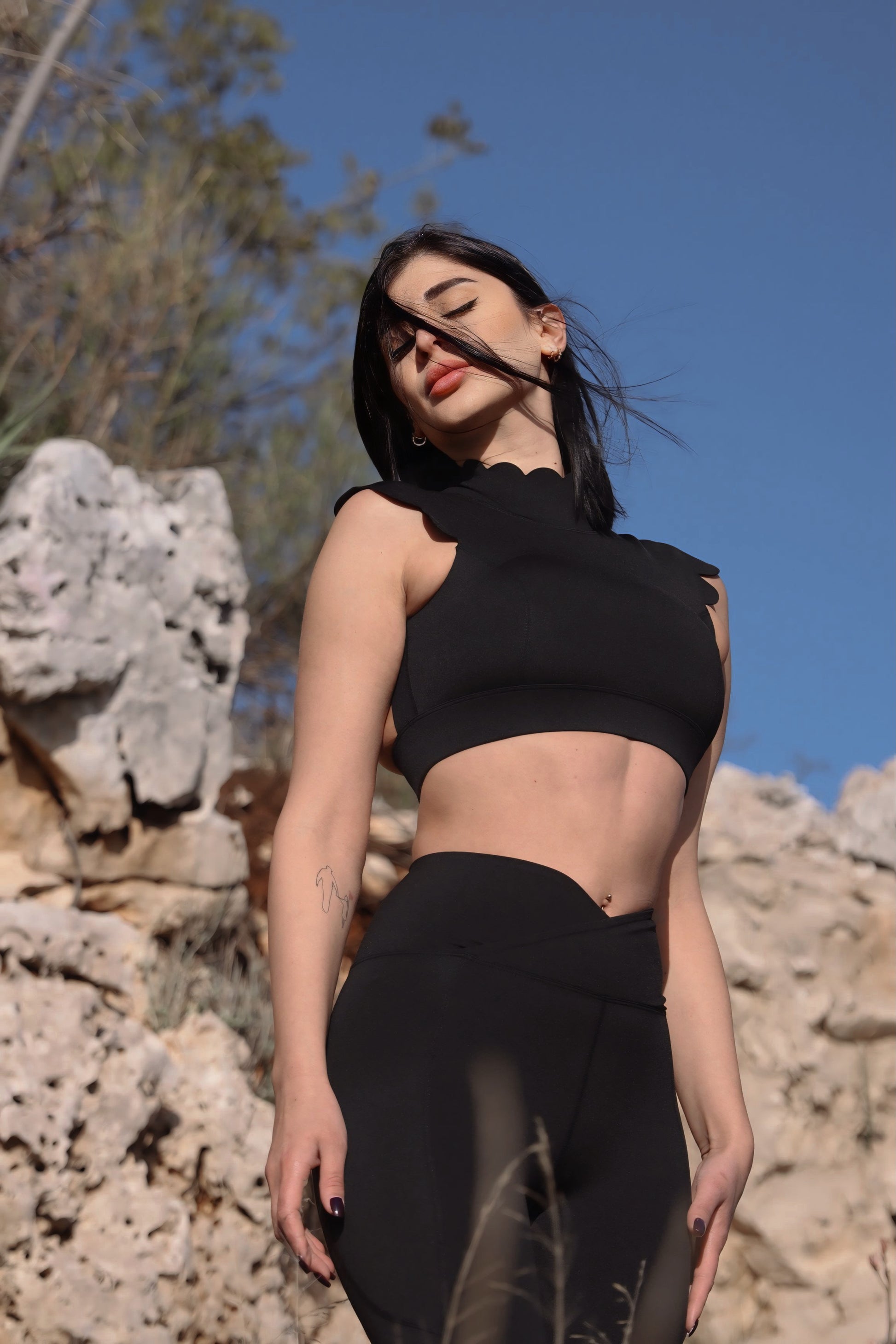 Stay cool and stylish with our Lune Breeze Top. Made from soft, breathable fabric, it features a chic open back and scalloped edges. Perfect for workouts or casual outings.